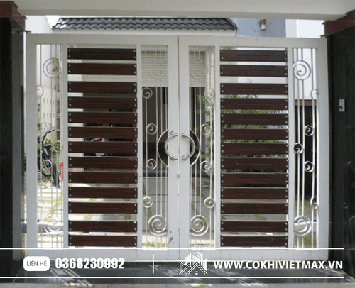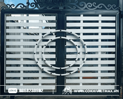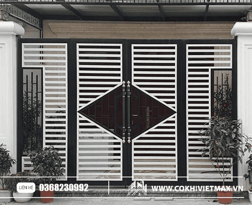 mẫu cổng sắt kết hợp 2 mầu đen trắng nổi bật
