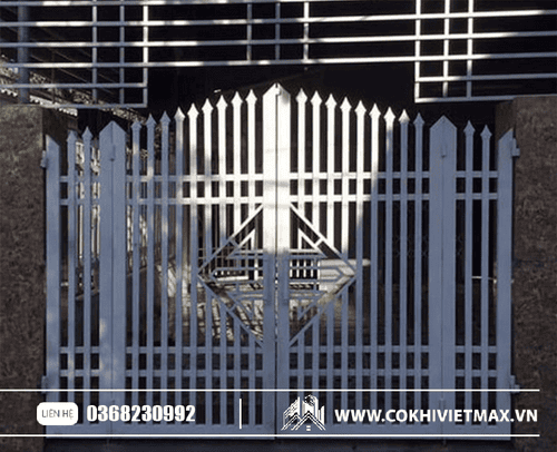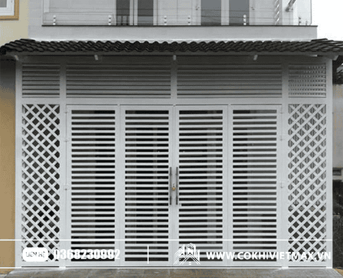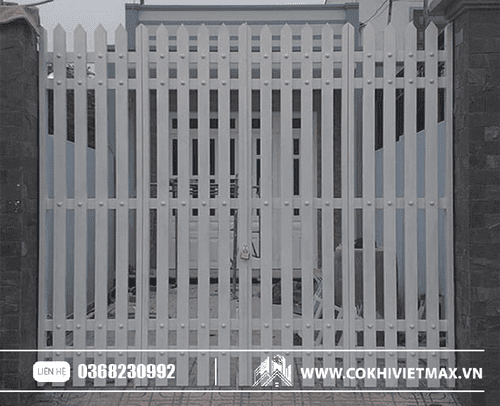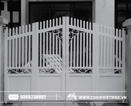 mẫu cửa cổng sắt hộp mạ kẽm sơn trắng đẹp