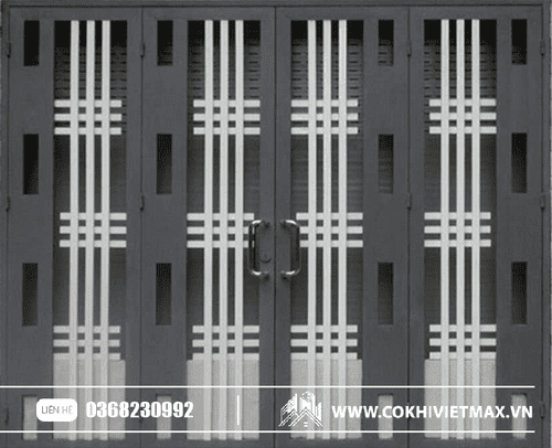 | Cửa sắt 2 cánh đơn giản | 1.6m x 2.2m | 2.000.000 – 2.500.000 | Sơn chống gỉ, bản lề Inox |