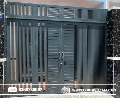 mẫu cửa cổng sắt hộp 4 cánh đơn giản đang là xu hướng của nhiều khách hàng