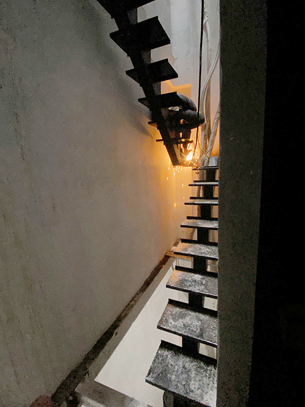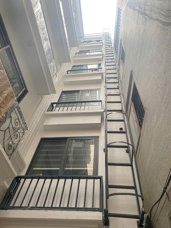 Phần lớn nhà phố tại Hà Nội lựa chọn thang ngoài trời gắn tường để tiết kiệm diện tích và đảm bảo tiêu chuẩn PCCC.