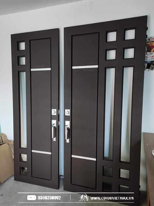 Mẫu cửa sắt 2 cánh hiện đại kết hợp kính cường lực cho nhà phố